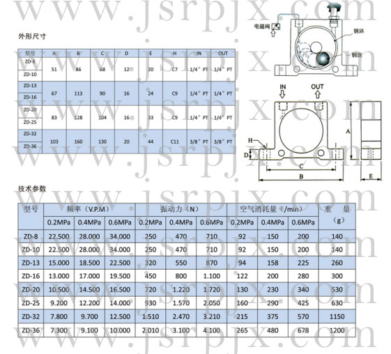 小型及薄板桶槽架橋破壞最佳選擇,并可設(shè)計(jì)運(yùn)用在振動(dòng)篩選、振動(dòng)式輸送、輸送整列、電鍍附著防止、幫助包裝充填、鑄造砂模之模板振動(dòng)。